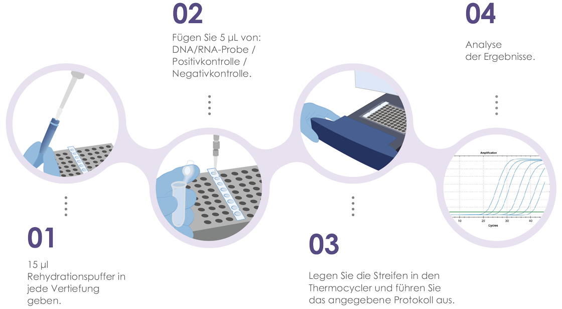 • Super einfach: Probe zugeben, in Thermocycler laden, Ergebnisse ablesen.